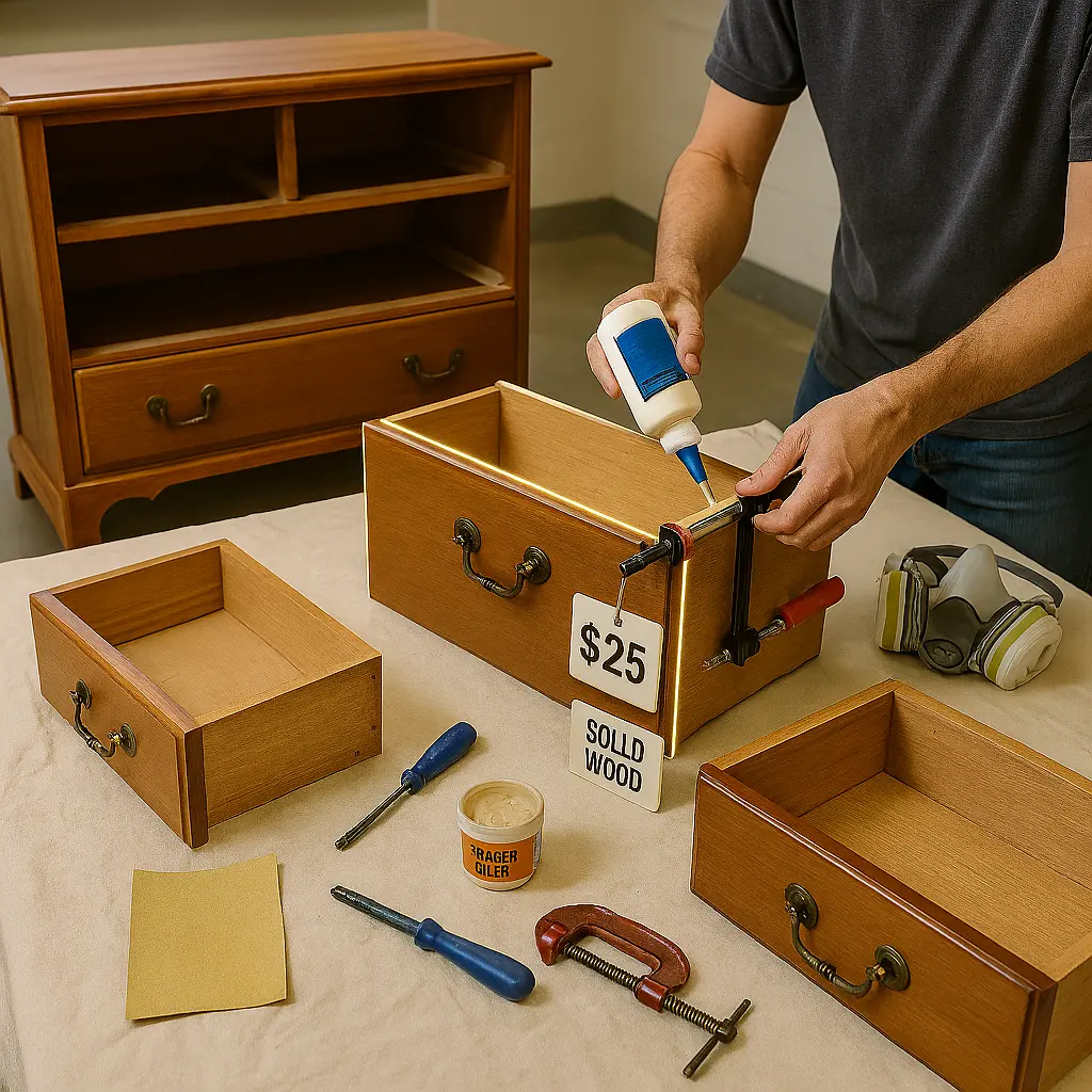 - Essentials: sandpaper (80/120/220), wood filler, primer, paint, topcoat, brushes/rollers, screwdrivers, clamps, TSP cleaner.