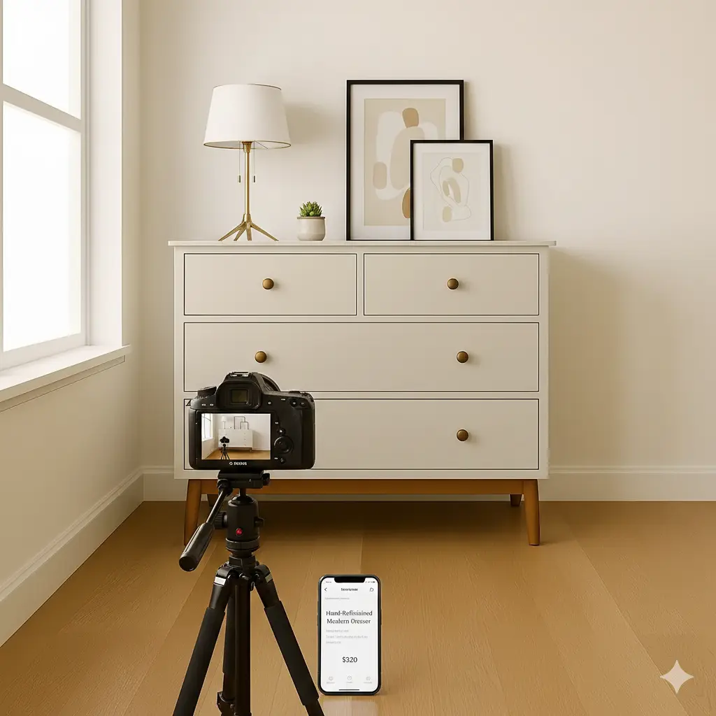 - Headline: include style + key upgrade (e.g., “Mid‑Century Dresser — Refinished, New Brass Pulls”).